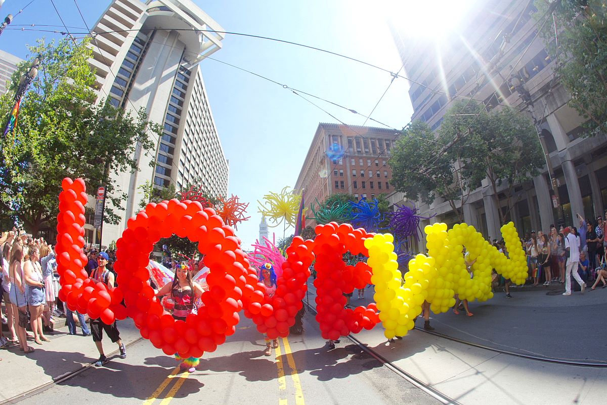 Art meets politics in a fleet of floats, vehicles, and marchers along Market Street during the San Francisco Pride Parade, one the nation’s largest LGBT events, starting at 10:30 am on Pride Sunday.