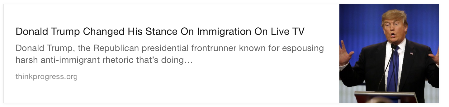 But Trump is now attempting to moderate his position, going back on some of his more hardline stances. During an interview with Fox News host Bill O’Reilly on Monday night, the candidate struck a dramatically different tone, promising to implement a “humane” immigration policy that’s essentially exactly what the Obama administration is already doing.
