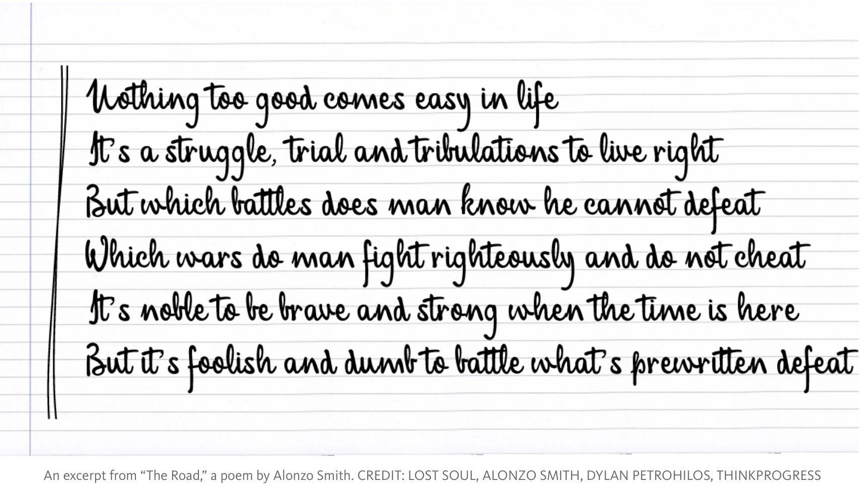 In between jobs, he played flag football and wrote poems, some of which he published in a book called Lost Soul in 2013.
